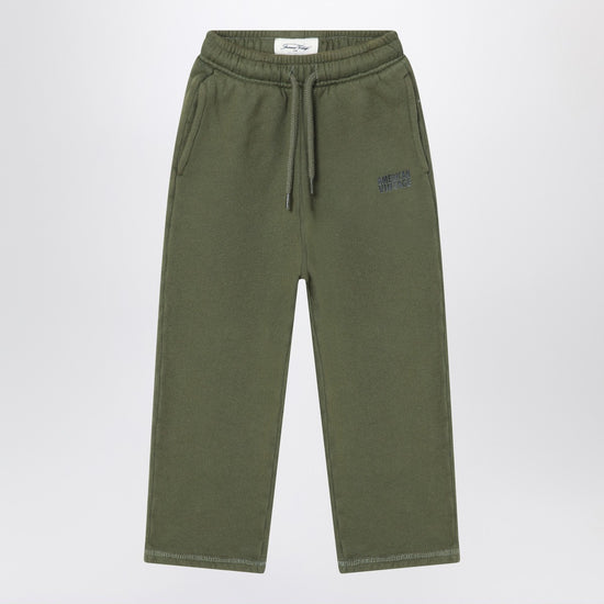 Khaki green cotton jogging trousers from America Vintage featuring an elasticated waistband with drawstring, two side welt pockets and lettering logo on the front.