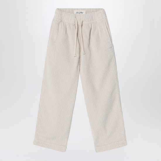 Trousers from American vintage in écru corduroy cotton velvet, featuring an elasticated waistband with drawstring, two side welt pockets and a patch pocket on the back.