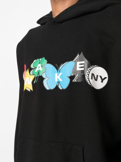 graphic logo-print hoodie from Awake NY featuring black, cotton, logo print to the front, long sleeves, elasticated cuffs, slouchy hood, front pouch pocket and straight hem. Printed charm logo hoodie Size and Fit - This piece fits true to size. We recommend you get your regular size. Model is 1,84m / 6ft 1in wearing size M