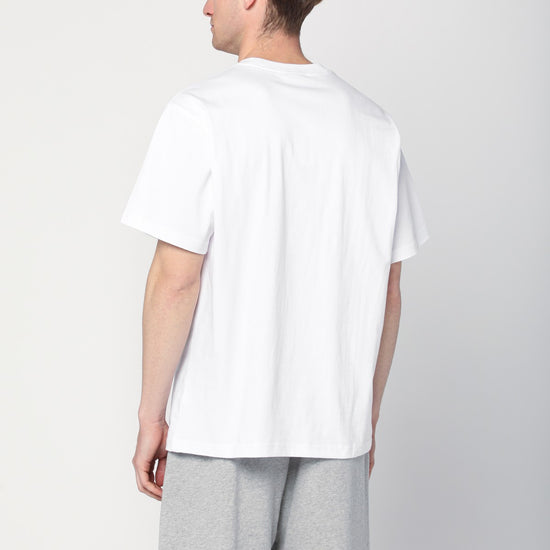 Awake NY white cotton T-shirt, featuring short sleeves, ribbed crew neck, and contrasting logo print on the front. Size and Fit - Model wears size L Model measurements: Height: 187 cm Chest: 100 cm Waist: 79 cm Hips: 96 cm