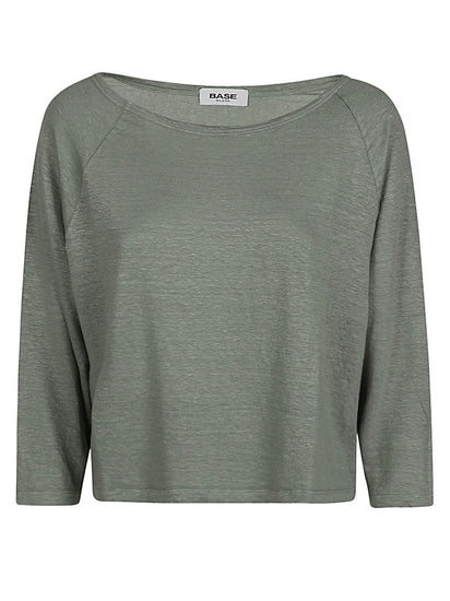 Military green linen long-sleeved boat neck sweater. Linen boat-neck sweater Size and Fit - This piece fits true to size. We recommend you get your regular size. Model is 1,75m / 5ft 8in wearing size 40 (IT)