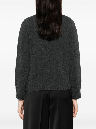 grey V-neck front button fastening long sleeves front patch pocket ribbed cuffs Wool cardigan