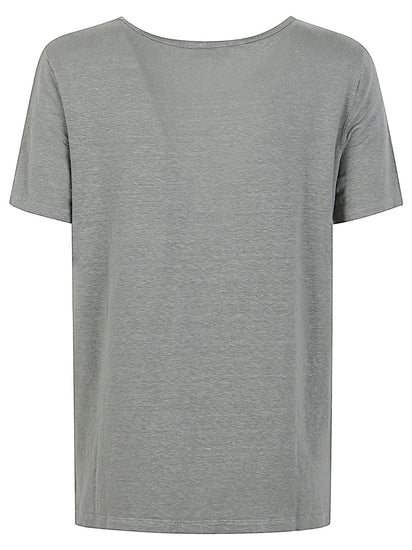 Made of cotton, army green, solid color, crew neck, short sleeves, straight hem. Size and Fit - This piece fits true to size. We recommend you get your regular size. Model is 1,75m / 5ft 8in wearing size 40 (IT)