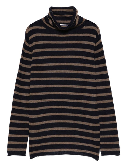 blue and brown horizontal stripes long sleeves cashmere Striped cashmere sweater