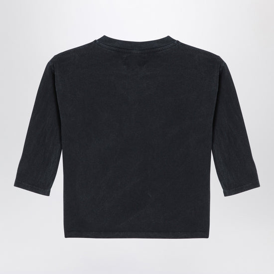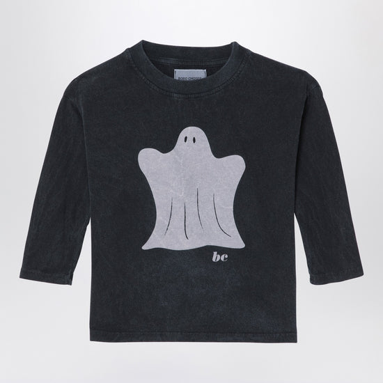 Black washed organic cotton crew-neck T-shirt from Bobo Choses featuring long sleeves, Ghost print on the front and straight hem.