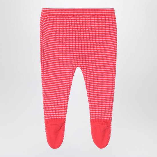 Leggings with foot by Bobo Choses in organic cotton with red and pink stripes, featuring an elasticated waist and a small embroidery on the front.