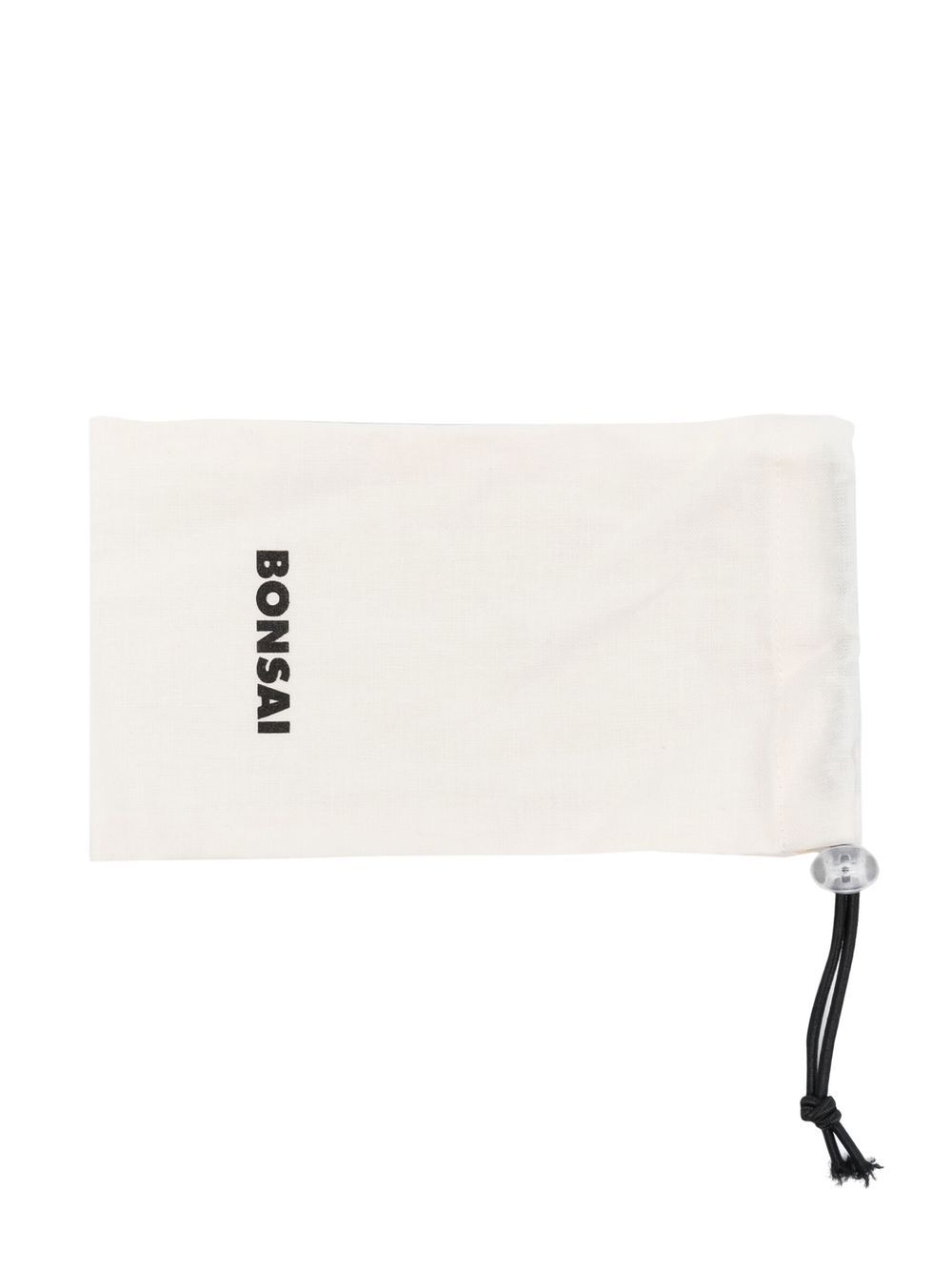 oversized curved-frame sunglasses from Bonsai featuring green tea, transparent design, oversize frame, curved corners, tinted lenses, logo print at the arm and straight arms. These glasses come with a protective case.. Happy sunglasses Size and Fit - Arm Length: 14.5 Centimetres. Bridge Width: 2.7 Centimetres. Lens Diameter: 4.8 Centimetres. Total Width: 13.5 Centimetres.
