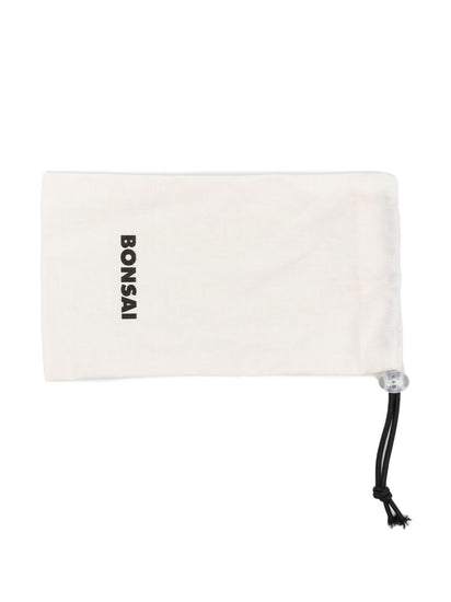 oversized curved-frame sunglasses from Bonsai featuring blue zircon, transparent design, oversize frame, curved corners, tinted lenses, logo print at the arm and straight arms. These glasses come with a protective case.. Happy sunglasses Size and Fit - Arm Length: 14.5 Centimetres. Bridge Width: 2.7 Centimetres. Lens Diameter: 4.8 Centimetres. Total Width: 13.5 Centimetres.