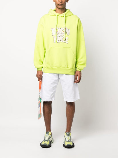 slogan-print hoodie from Bonsai featuring neon green, cotton, slogan print, drawstring hood, front pouch pocket and ribbed cuffs and hem. Printed cotton hoodie Size and Fit - This piece fits true to size. We recommend you get your regular size. Model is 1,84m / 6ft 1in wearing size M