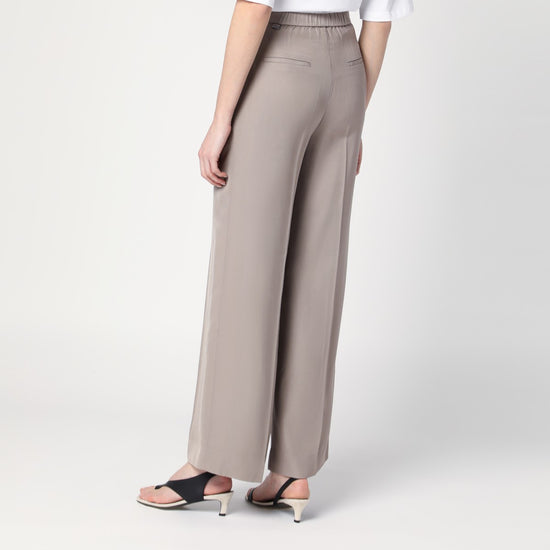 Calvin Klein pants in ash-coloured viscose and linen, featuring a front zip closure with a hook, elasticized waistband at the back, pleats at the front, and two welt pockets at the back. Size and Fit - Model wears size 34 E U Model measurements: Height: 177 cm Chest: 83 cm Waist: 62 cm Hips: 90 cm