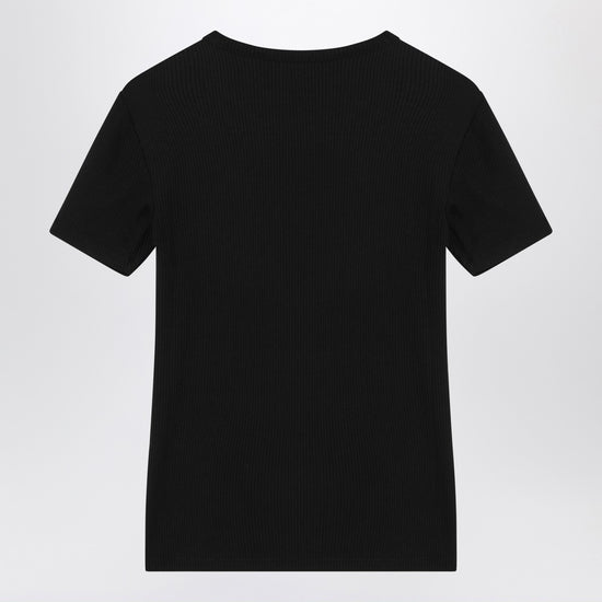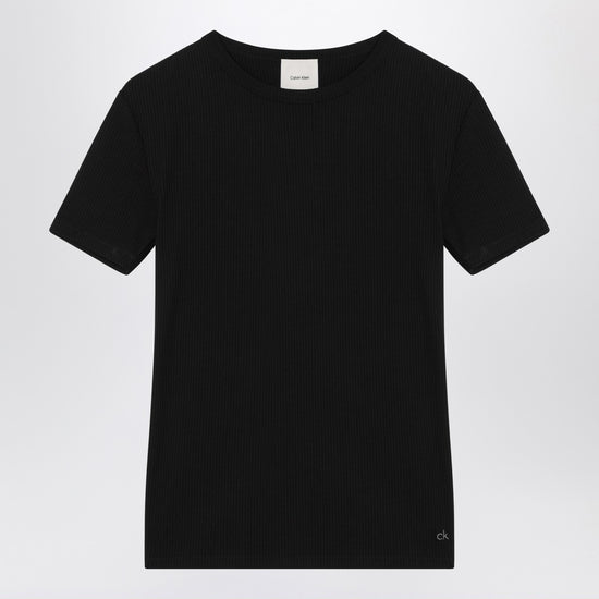 Calvin Klein black modal crew neck T-shirt, featuring short sleeves, ribbed design, and logo embroidery on the hem. Size and Fit - Model wears size S Model measurements: Height: 180 cm Chest: 85 cm Waist: 66 cm Hips: 89 cm