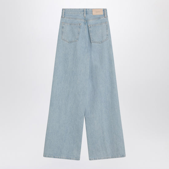 Calvin Klein wide jeans in light blue cotton denim, featuring a high waist with belt loops, five classic pockets, front closure with zip and button, and a back logo patch. Size and Fit - Model wears size 26 Model measurements: Height: 180 cm Chest: 85 cm Waist: 66 cm Hips: 89 cm