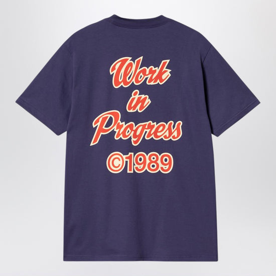 Crewneck T-shirt by Carhartt WIP in lightweight organic cotton jersey in purple Aura, featuring a regular fit, short sleeves and contrasting graphic logo print on front and back. Size and Fit - Model wears size L Model measurements: Height: 188 cm Chest: 100 cm Waist: 76 cm Hips: 96 cm