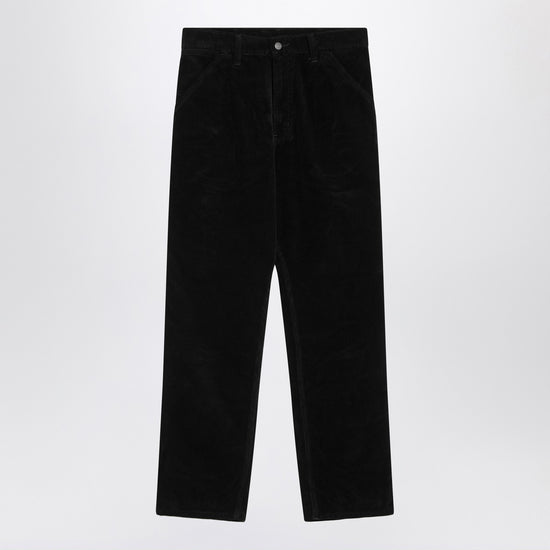 Carhartt WIP corduroy pants in black with 8 wales, characterized by a comfortable straight leg, functional pockets, bar tacks at high-wear areas, tool pockets, hammer loop, square label on the back, belt loops, and a zip and button closure. Size and Fit - Model wears size 32 Model measurements: Height: 185 cm Chest: 105 cm Waist: 85 cm Hips: 100 cm