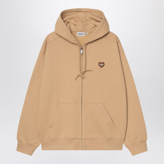Carhartt WIP sweatshirt made of heavy brushed cotton-polyester jersey for a fleece effect in Dusty Brown colour, characterized by a balloon cut, dropped shoulders, ribbed finishes, heart-shaped fabric application, back graphic print, adjustable hood with drawstring, a kangaroo pocket, and zip closure. Size and Fit - Model wears size L Model measurements: Height: 187 cm Chest: 102 cm Waist: 76 cm Hips: 92 cm