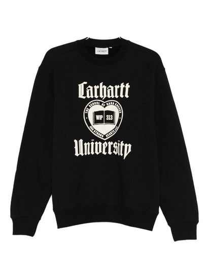 black crew neck long sleeves logo print Logo crewneck sweatshirt