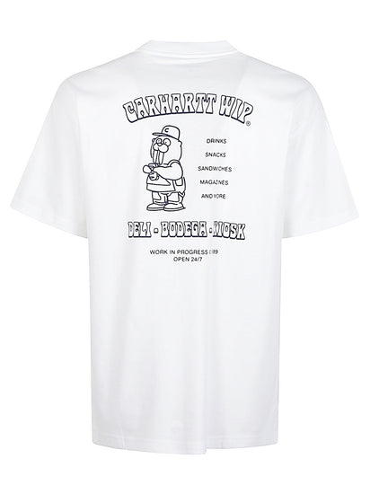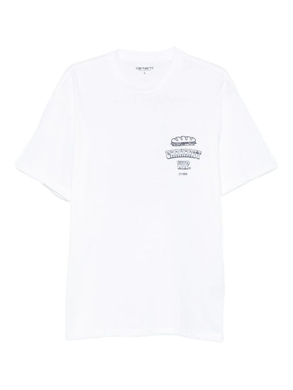Black cotton jersey T-Shirt from Carhartt Wip, with graphic print on both front and back, crew neck, short sleeves, straight hem. Logo cotton t-shirt