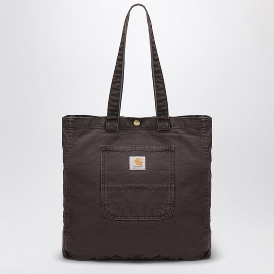 Small tote bag from Carhartt WIP in 340-gram Dearborn canvas with a faded effect, featuring two handles, a snap button closure, an external pocket with a square fabric label, and an internal zip pocket. Size and Fit - Width 38 cm x Height 40 cm x Depth 13 cm Handle drop: 25 cm