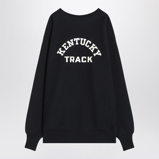 Navy blue cotton blend Champion crew neck sweatshirt, featuring long sleeves, a loose fit, contrasting print on the front, and ribbed edges. Size and Fit - Model wears size M Model measurements: Height: 187 cm Chest: 102 cm Waist: 76 cm Hips: 92 cm