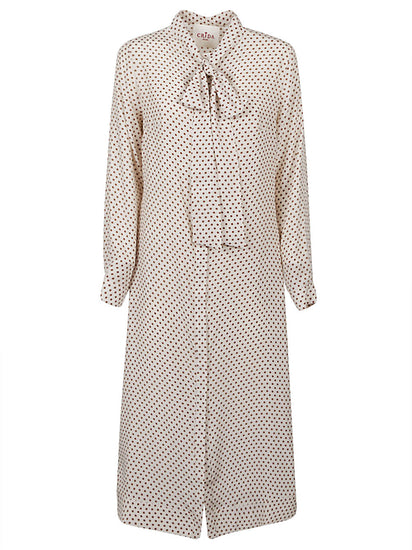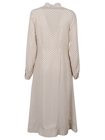 White, polka dot dress, buttons closure, flake on the neck, long, hidden side pockets. Polka dot silk midi dress Size and Fit - This piece fits true to size. We recommend you get your regular size. Model is 1,75m / 5ft 8in wearing size 1 (NUM)