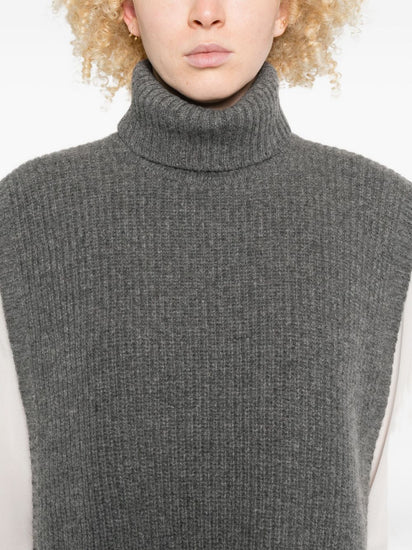 grey wool ribbed knit turtleneck neckline sleeveless straight hem cropped length Wool turtle-neck sweater