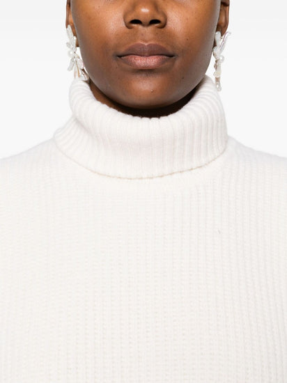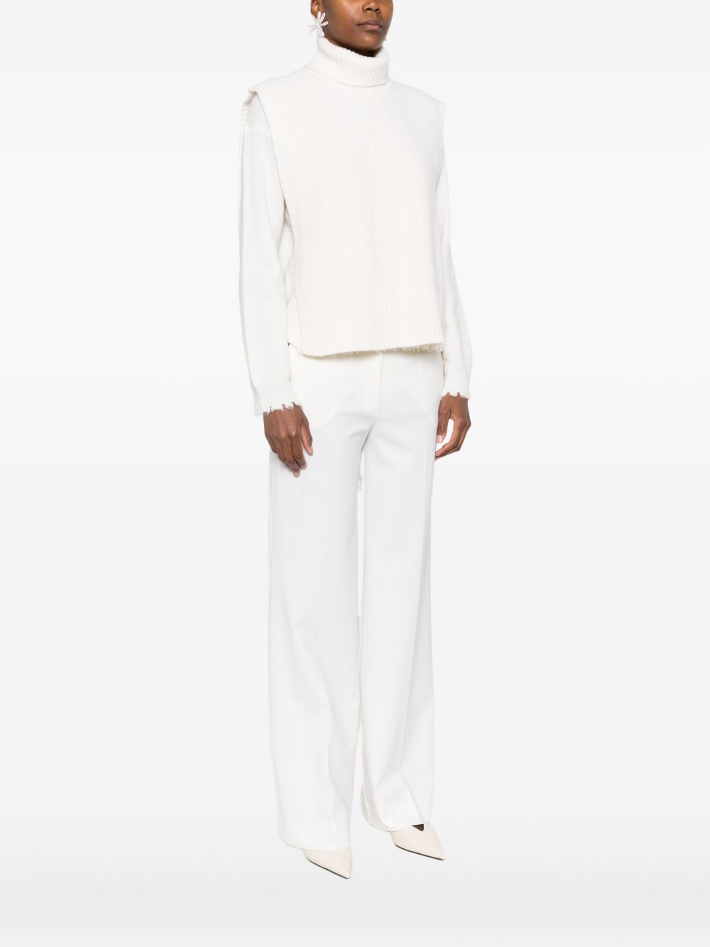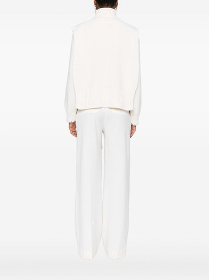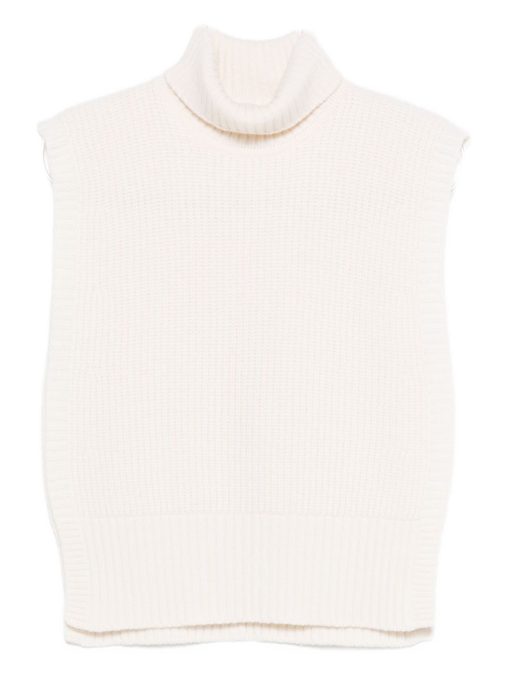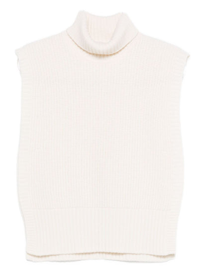 off-white ribbed knit sleeveless turtleneck neckline straight hem cropped length wool Wool turtle-neck top