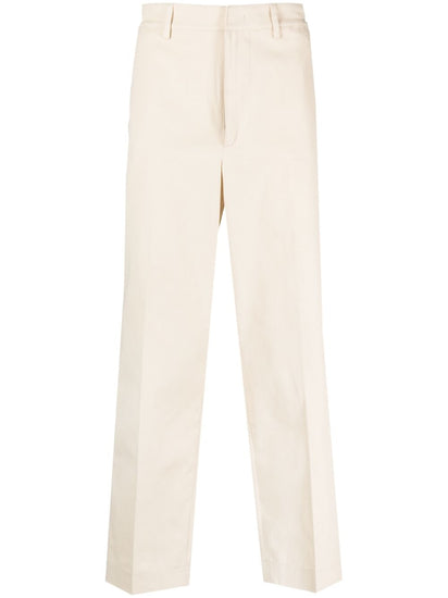 straight-leg cotton trousers from Department 5 featuring sand beige, cotton blend, belt loops, logo patch to the rear, straight leg, hook and zip fly fastening and two rear button-fastening jetted pockets. Wide leg trousers Size and Fit - This piece fits true to size. We recommend you get your regular size. Model is 1,84m / 6ft 1in wearing size 32 (WAIST CM)