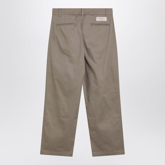 Brain Dead trousers in collaboration with Brooks Brothers in desert cotton, featuring front zip and button fastening, belt loops, two side pockets, two welt pockets at the back, rear logo patch, contrast logo embroidery on the front and front pleats.