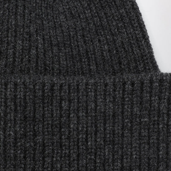 Destin Surl hat in anthracite grey wool and cashmere, featuring a ribbed texture and turned-up hem.
