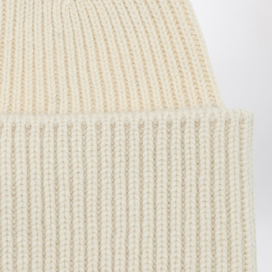White wool and cashmere beanie by Destin Surl featuring a ribbed weave and turned-up hem.
