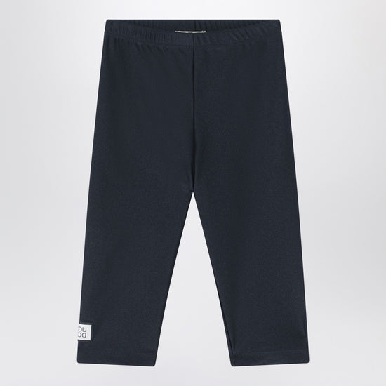 Douuod leggings in black shiny nylon blend, featuring an elasticated waist and logo patch on the ankle.
