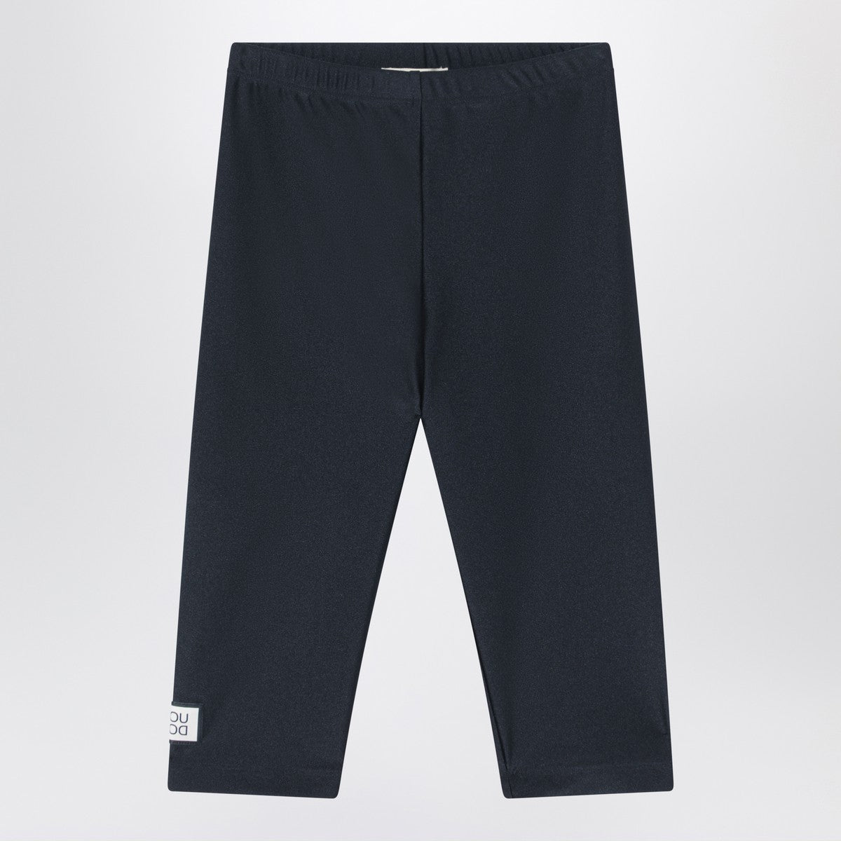 Douuod leggings in black shiny nylon blend, featuring an elasticated waist and logo patch on the ankle.
