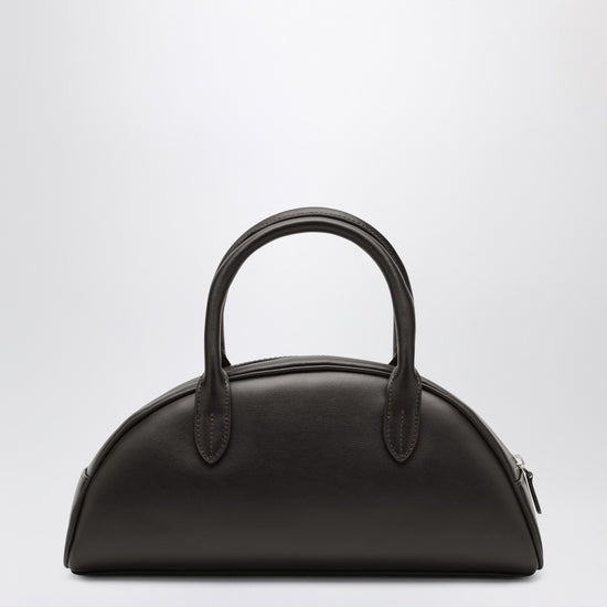 Brown leather handbag by Dunst with two top handles, half-moon shape, top zip closure, removable shoulder strap and one flat inner pocket. Size and Fit - Width 32 cm x Height 15 cm x Depth 9 cm Adjustable shoulder strap length min 97 cm - max 120 cm Handle drop: 10 cm