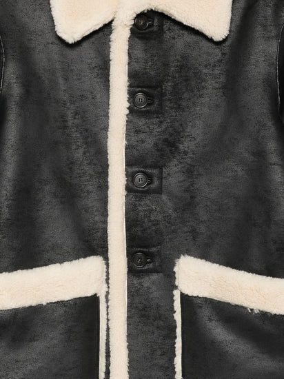 black front button fastening contrasting collar front patch pockets trim detail long sleeves Faux leather jacket