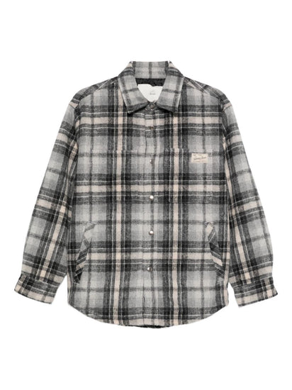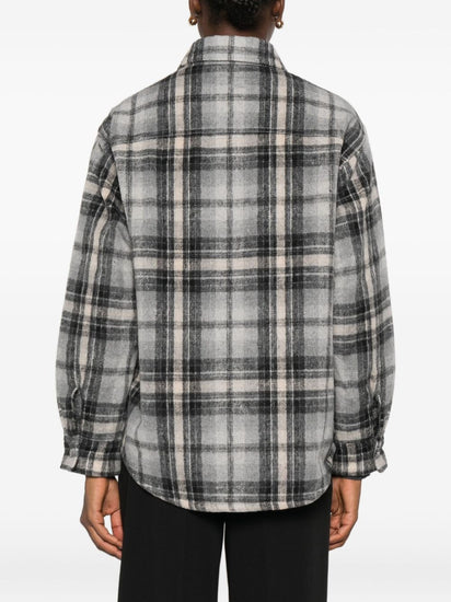 grey plaid pattern front button fastening chest patch pockets long sleeves Flannel checked shirt
