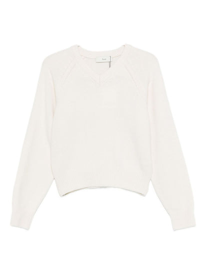 white v-neck long sleeves ribbed cuffs and hem Wool v-necked sweater