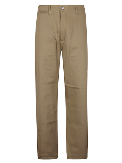 Pantalone marrone, wide leg, chiusura frontale con zip e bottone, due tasche dietro, un taschino davanti. Cotton wide-leg trousers Size and Fit - This piece fits true to size. We recommend you get your regular size. Model is 1,84m / 6ft 1in wearing size M