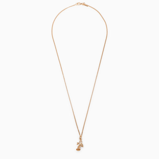 Necklace by Emanuele Bicocchi in 925 gold-plated silver with rose and skull with a hook closure and an engraved logo. The product is handmade and may vary slightly from the image. Emanuele Bicocchi jewellery is made in 925 untreated and burnished silver, which gives it an antique look. The plating may fade over time, therefore it is advised to not expose the jewellery to corrosive/aggressive agents.