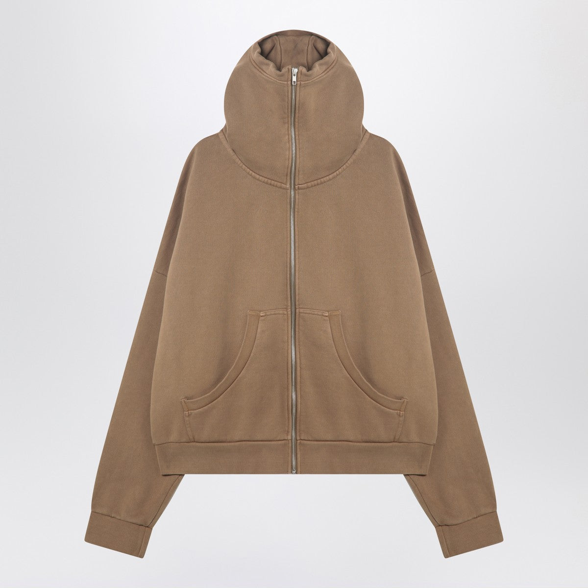Entire Studios beige cotton sweatshirt, featuring long sleeves, a fixed hood, two front pockets, ribbed edges, and a zip closure. Size and Fit - Model wears size S Model measurements: Height: 179 cm Chest: 82 cm Waist: 65 cm Hips: 90 cm