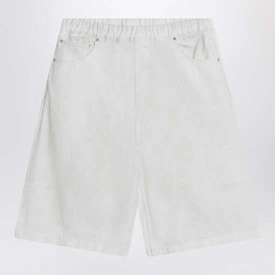 Bermuda wide from Entire Studios in bone white cotton, characterized by an elasticated waist, three front pockets, and two back pockets with flap. Size and Fit - Model wears size L Model measurements: Height: 189 cm Chest: 104 cm Waist: 78 cm Hips: 95 cm