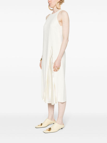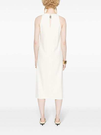 cream white stretch-design round neck sleeveless racerback mid-length unlined flared hem single rear button fastening Sleeveless midi dress Size and Fit - This piece fits true to size. We recommend you get your regular size. Model is 1,75m / 5ft 8in wearing size 40 (IT)
