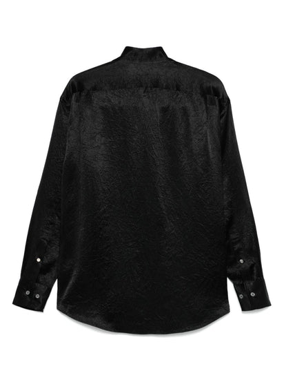 black front button fastening oversized pointed collar long sleeves buttoned cuffs Crinkle shirt Size and Fit - This piece fits true to size. We recommend you get your regular size. Model is 1,75m / 5ft 8in wearing size 36 (FR)