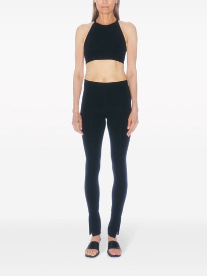 black nylon blend layered design high neck thin straps racerback logo underband Sports bra Size and Fit - This piece fits true to size. We recommend you get your regular size. Model is 1,75m / 5ft 8in wearing size S