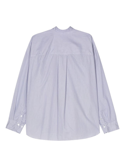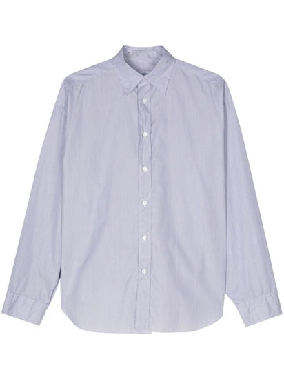 white/navy blue cotton poplin texture vertical stripe pattern pointed flat collar long sleeves with buttoned cuffs hem gusset curved hem box-pleat detail to the rear front button fastening Striped cotton shirt Size and Fit - This piece fits true to size. We recommend you get your regular size. Model is 1,75m / 5ft 8in wearing size 40 (IT)