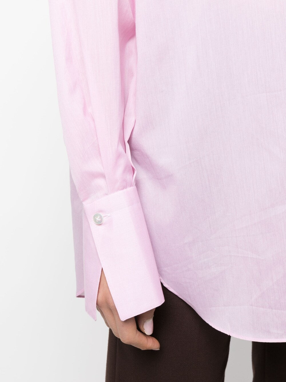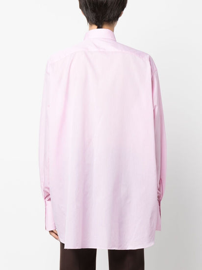 long-sleeve button-up cotton shirt from FINAMORE 1925 NAPOLI featuring light pink, oversize frame, pointed flat collar, buttoned cuffs, front button fastening, cotton, long sleeves and curved hem. Cotton shirt Size and Fit - This piece fits true to size. We recommend you get your regular size. Model is 1,75m / 5ft 8in wearing size 40 (IT)