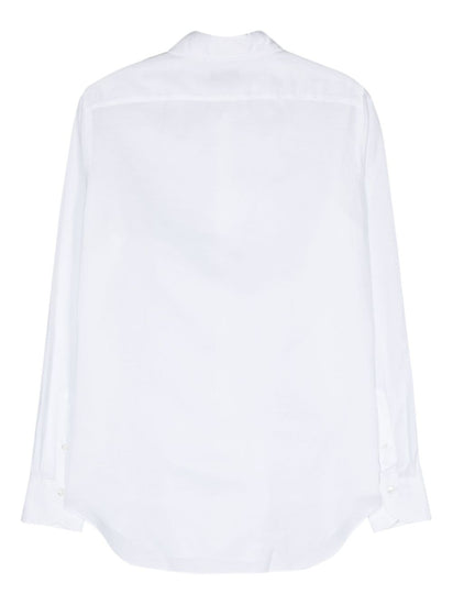 white cotton-linen blend semi-sheer construction classic collar front button fastening long sleeves buttoned cuffs hem gusset curved hem Cotton and linen blend shirt Size and Fit - This piece fits true to size. We recommend you get your regular size. Model is 1,84m / 6ft 1in wearing size 39 (COLLAR CM)
