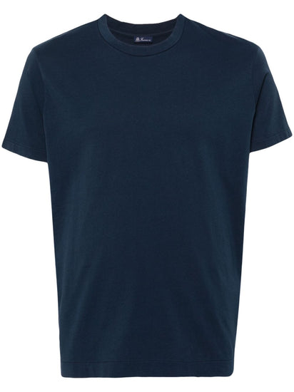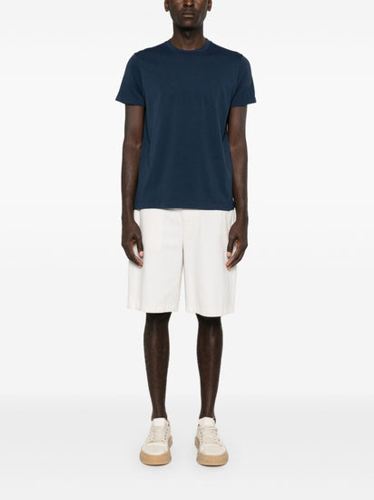 navy blue cotton jersey texture round neck short sleeves straight hem Cotton t-shirt Size and Fit - This piece fits true to size. We recommend you get your regular size. Model is 1,84m / 6ft 1in wearing size M
