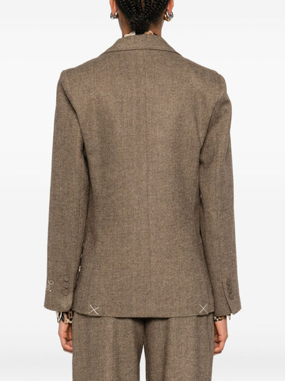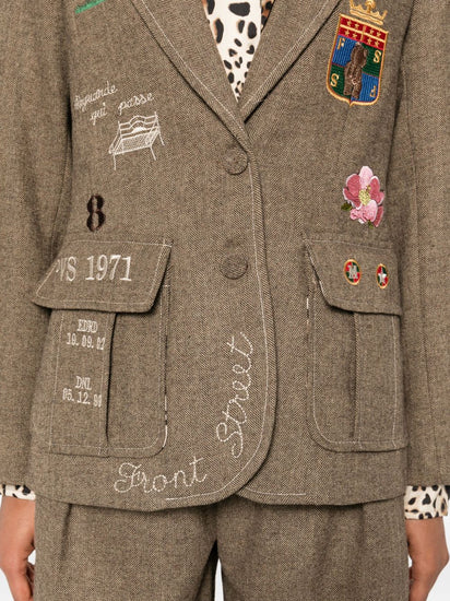 brown embroidered details patch pockets button fastening leopard print lining Single-breasted jacket