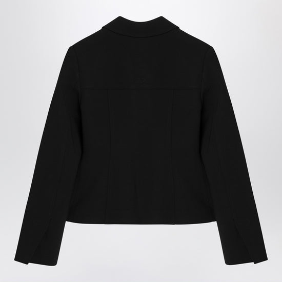 Single-breasted jacket by Ganni in black recycled polyester crêpe, featuring a classic lapel, front closure, long sleeves, and a fitted silhouette. Size and Fit - Model wears size 34 FR Model measurements: Height: 179 cm Chest: 82 cm Waist: 65 cm Hips: 90 cm