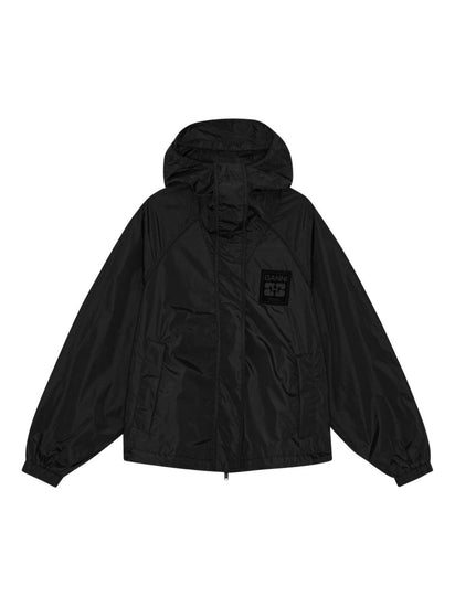 black front press-stud and zip fastening logo patch at the chest elasticated cuffs long sleeves Nylon blouson jacket